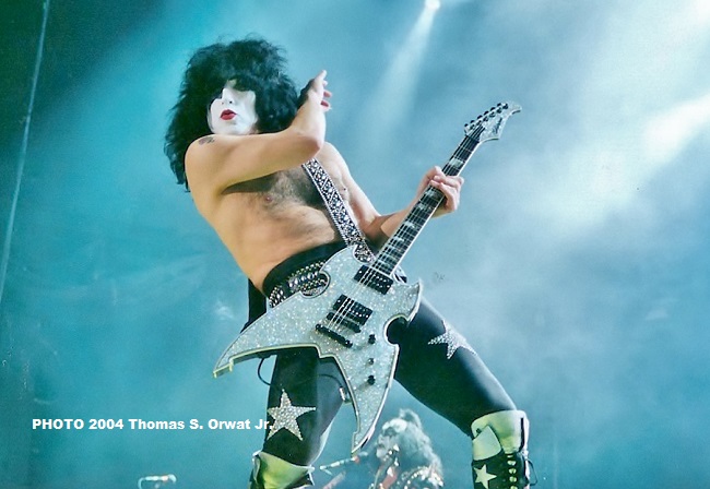 Darien NY-You wanted the best and you got the best!!! The hottest band in the world-KISS!!! Yes, even after all these years- thirty to be exact, Kiss still remains as one of the hottest bands in the world. Well, at least as far as their stage show, merchandising and fan dedication goes. The 7,000 plus audience worshiped their heroes on this night (many in attendance have been fans for the full 30 year history of the band and others were witnessing their first concert ever) with their rapid reaction to every note that the band played and by stocking up on merchandise. Yes, with Kiss it doesn’t matter if a t-shirt costs $35.00, it’s a necessary purchase for legions of die-hard fans referred to as the Kiss Army. It’s Kiss and Sell baby, that’s what it’s all about. Gene Simmons, bassist/singer/co-leader of Kiss, is Rock n’ Roll’s Donald Trump. He takes advantage of every avenue for merchandising and making money. Hell, you can even buy Kiss condoms, tongue lubricated by Gene himself, or so that’s what they claim. Well, I’m a fan, but I think that my wife and I will pass on that one.