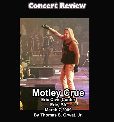 Erie, PA- A sold out, ready to rock crowd witnessed the return of Mötley Crüe to the Civic Center in Erie, PA. And It if you were between 30-55, this was most certainly to place to be. And as always The Crue did not disappoint. With a show filled with tons of pyro, lights and special effects the Crue had the audience standing with fist pumping during their entire 90 minute hit filled set.