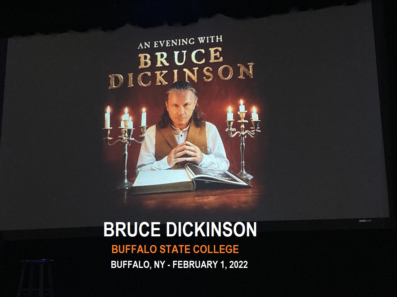 Buffalo, NY – The legendary voice of Iron Maiden, Bruce Dickinson performed in front of a nearly sold out audience on a wintery Tuesday evening. This was Dickinson 11th show on his 44 date long, “An Evening With” spoken word North American tour. The show was broken up into two parts, the first part being Dickinson telling very interesting stories of his life beginning from his early days attending school up to his recent battle with throat cancer. The second part of the show was Dickinson answering questions that members of the audience submitted on an index card prior to the start of the show. Dickinson ended the evening with an incredible a cappella version of the chorus of his 1994’s hit “Tears Of The Dragon.”