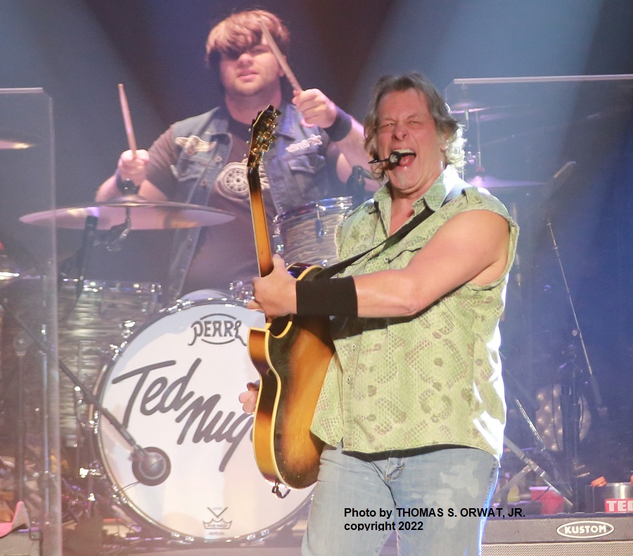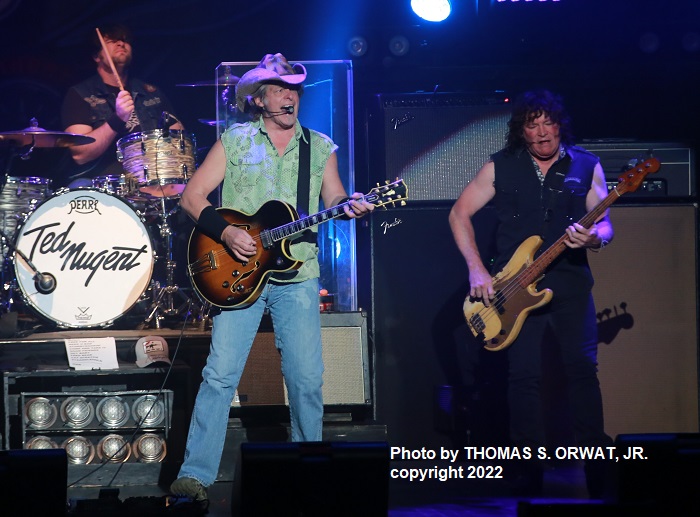On this evening, Nugent played a high intensity 14-song set. He declared. “This is my most important concert ever!” He then explained “My next concert will be even more important.” Nugent also commented that this was his 6822nd concert that he has performed.
