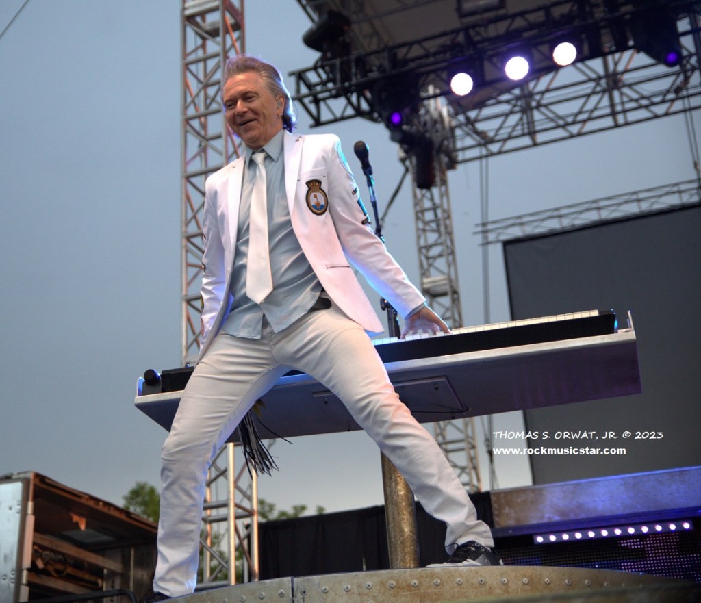 STYX hit the stage at 8:25 pm and their performance featured most of their popular hit rock anthems coupled with 4 tracks from ” Crash of the Crown” strategically crowbarred in. The band was in great spirits, and the affable Shaw is a truly a likable rockstar. Gowan was energetic and entertaining, and Shaw referred to him as the master of the ceremony. He often was prancing around the stage, showing off on his spinning keyboard stand, playing behind his back and making funny gestures throughout the performance. It’s almost impossible to take your eyes off of him. He is a vituoso musician, and one of the most animated and entertaining performers in rock music today.