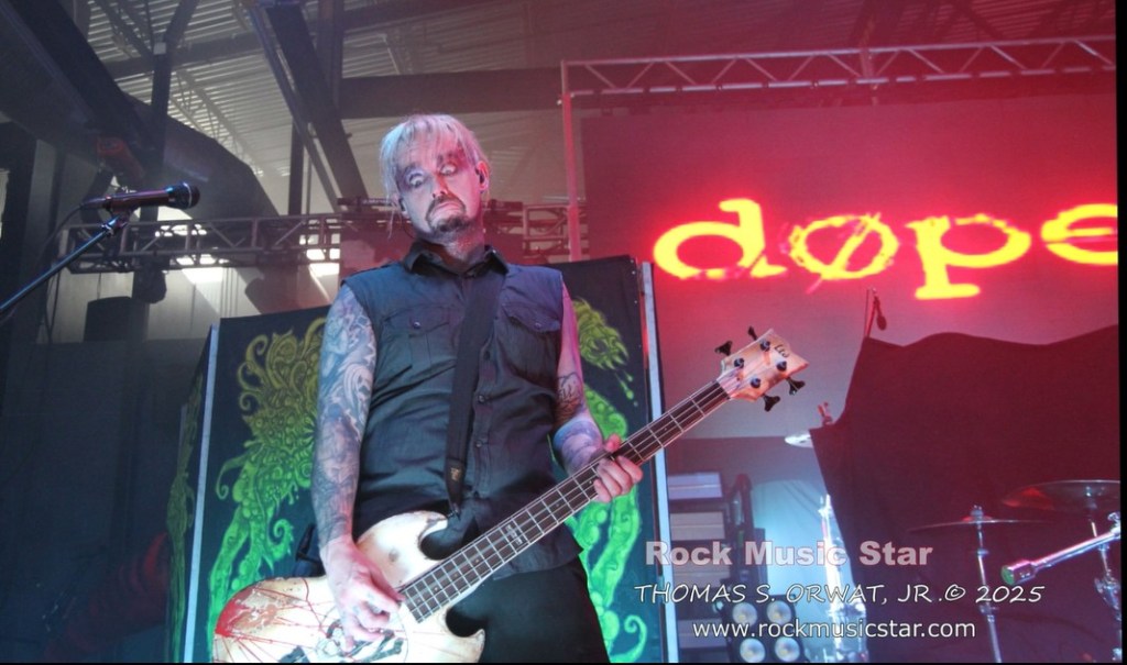 Dope hit the stage at 7:15 PM, setting the tone for what was still to come. Led by vocalist mastermind Edsel Dope, the band brought a unique twist to this show—longtime Dope guitarist Virus was back onstage, marking a special moment for longtime fans. During previous tour dates, Static-X guitarist Koichi Fukuda had been filling in, but tonight, Virus reclaimed his spot.