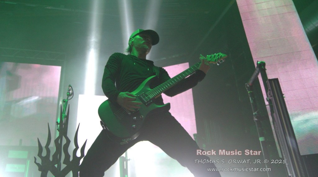Closing out the night, Static-X hit the stage at 9:45 PM, delivering a relentless 16-song set. This incarnation—often referred to as Static-X 2.0—has evolved significantly since the band’s relaunch in 2018, featuring original members Tony Campos (bass), Koichi Fukuda (lead guitar), and Ken Jay (drums) alongside masked frontman Xer0—widely believed to be Edsel Dope—who stepped in after the passing of Wayne Static on November 1, 2014.