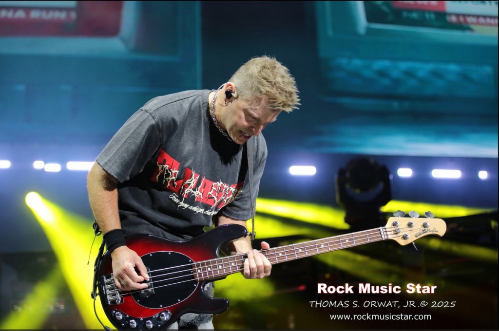 Breaking Benjamin closed out the night with a performance that was less theatrical than Three Days Grace, but no less powerful. Their set leaned heavily on the music itself—letting the band’s signature blend of profound lyrics and heavy guitar riffs speak for them. Formed in 1999 in Wilkes-Barre, Pennsylvania, the band is now anchored by founding member Benjamin Burnley (vocals), whose unmistakable voice and emotional intensity continue to define their sound. The current lineup—Jasen Rauch (lead guitar), Keith Wallen (rhythm guitar), Aaron Bruch (bass)—joined in 2014 as part of a major reboot of the band. Touring drummer James Cassells (drums) is filling in this year for longtime member Shaun Foist (drums, programming), who has been with the band since 2014 but was unable to tour. They hit the stage late at 9:45 and played until 11:05, but the crowd simply loved them. When you have such a strong double bill, fans sometimes leave early if they came for just one band—but on this evening, it felt like both bands were equally appreciated.